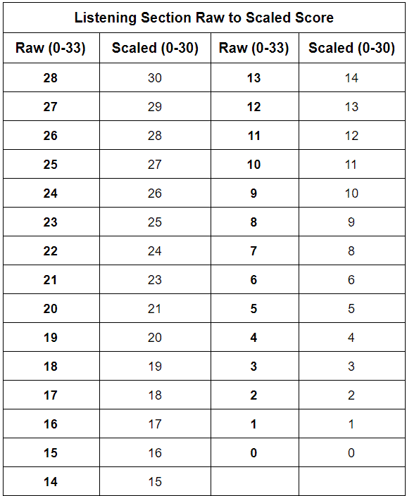 Toefl Reading And Listening Raw To Scaled Scores Conversion Test Resources